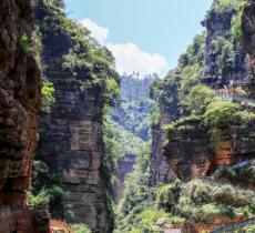 己衣大裂谷-金沙江旅游区距武定县城123公里,现有弹石路相通。景区面积约30平方公里,有景点10余个。长约12公里的大裂谷,最宽处约200米,最窄处约6米,裂谷两侧鸡犬相闻,却难以相通,裂谷最深处300余米,深不见底,形成了惊险奇特的崖壁奇景。在裂谷最窄处,一块天然巨石横亘其间,天堑变通途,裂谷两侧悬崖峙立、古木参天、山花烂漫,风光旖旎。节庆之日,彝族、傈僳族、苗族、傣族等少数民族聚集于此,绚烂的民族服饰、悠扬的民族歌声和悬崖奇景,构成一幅多姿多彩的壮丽风景。该景区融滇中最大的裂谷、天生桥、定向爆破筑成的中型水库、金沙江风光、天然温泉与甘彝族、黑彝族、傈僳族、傣族风情为一体,是开展探险、漂流、康体、热区农业观光、自助旅游之佳境。