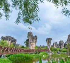 石林杏林大观园旅游度假风景区,座落在阿诗玛的故乡——石林,景区以黑石林为旅游主体,其景观石头各异,千姿百态、山、石、水相影,绿树山花遍地,身临其境,让人流连忘返。在杏林大观园的中央地带有一处长800米,宽30~80米的黑石箐,呈石林状态,石块千奇百怪、婀娜多姿。传说这块小石林是八仙斗法所造。因此林中能找到形态逼真酷似的铁拐石、毛驴石、一指擎天石、花篮石、洞箫石、玉带峰等;又有传说,药师佛阿波多罗密曾在此托梦,指导彝家头人阿古木斯学习医道,济世救人。因此石箐中遍布千种草药,引来鸟语花香,成为古滇国纵横千里少有的“仙境”。